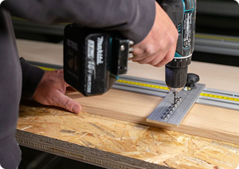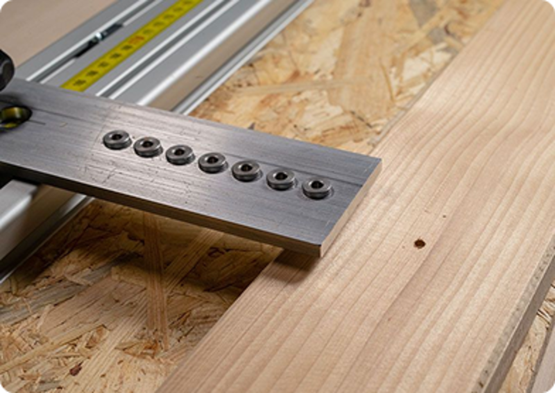 Durch die immer wiederkehrenden Bohrabstände können alle benötigten Bretter nach sauberem Aufmaß in der Werkstatt vorbereitet werden.